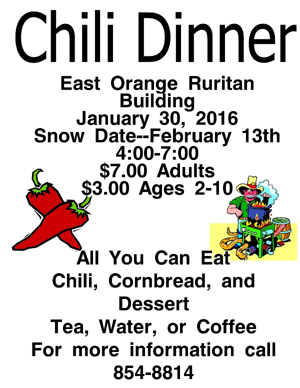 All you can eat Chili, cornbread, dessert. Tea and coffee included.